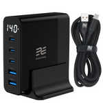 Ładowarka sieciowa Encore Energy GaN QC 4+ PD 3.0 USB-A x2 USB-C x3 140W GaN-14083R z wyświetlaczem + kabel USB-A USB-C 2m